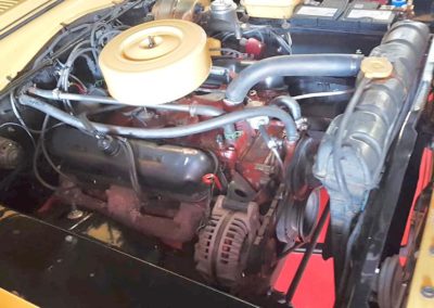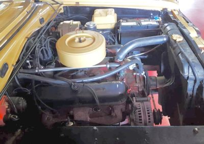 L’exemplaire que nous présentons a été vendu neuf en France par l’importateur Simca Automobile le 15 septembre 1966. Il aurait alors appartenu à une personnalité du show-business. Cette auto présente aujourd’hui une saillante peinture jaune, son toit, ses jantes et ses bandes de couleur noire lui confèrent un look racing à l’américaine. A l’intérieur, on retrouve une sellerie en skaï dans son jus avec une console centrale, qui était à l‘époque en option. Au niveau mécanique, notre Barracuda est équipée du V8 de 4.5l développant 180 ch, associé à une boite de vitesses manuelle à 4 rapports. Lors de notre essai routier, nous avons été surpris par le confort d’utilisation de ce muscle car. La puissance de son moteur est parfaitement exploitable grâce à la boite manuelle qui permet de grimper dans les tours.