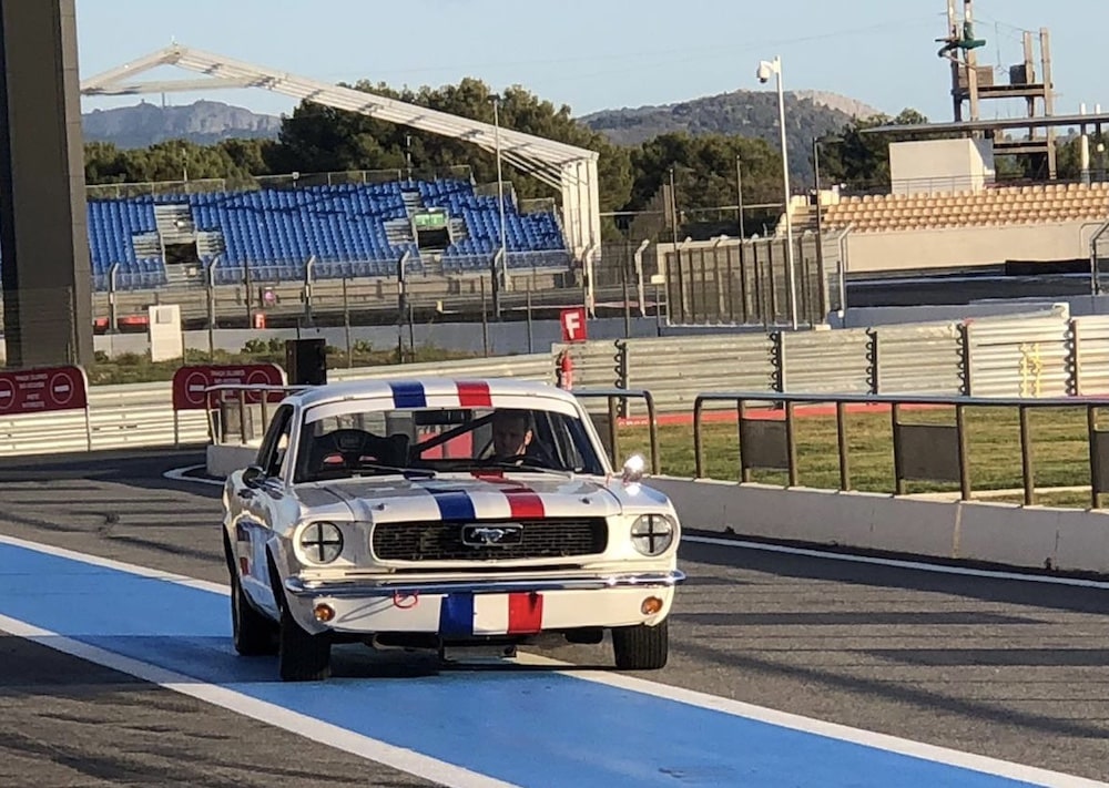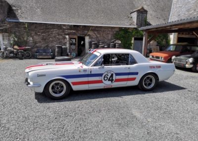 En 2001-2002, cette Mustang a été restaurée dans une optique compétition par l’écurie allemande Derichs et engagée entre 2004 et 2007 par Erwin Derichs dans le Championnat d’Europe des voitures de tourisme historiques de la FIA. Elle est présentée comme n’ayant subi aucun accident pendant sa carrière sportive. En 2005 et en 2006, elle s’est classée deuxième de sa catégorie et, lors de cette dernière saison, elle a figuré parmi les premières au classement général. Elle a de plus gagné les rallyes FIA de la Sarre et de Cologne-Ahrweiler en 2004. Après sa revente en 2007, elle a bénéficié de différents travaux d’entretien, dont tout récemment une remise en état de plus de 200 heures. Depuis, elle n’a roulé qu’une heure pour des essais sur piste et pas la moindre heure en course.